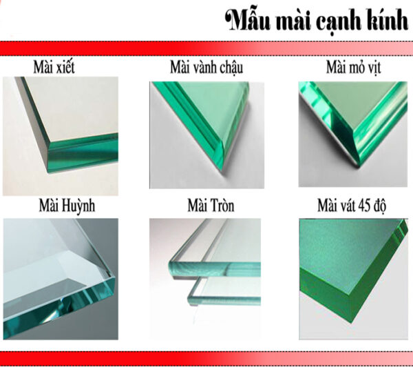 - Một số kiểu mài kính thông thường là mài tròn, mài vát 45 độ, mài huỳnh, mài xiết, mài mỏ vịt,…